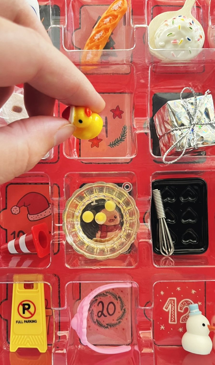 Το πακέτο περιέχει 24 διαφορετικά μικρά πραγματάκια κάποια εκ των οποίων είναι άμεσα συνδεδεμένα με τον ερχομό των Χριστουγέννων. Κάθε πακέτο διαφέρει με το άλλο, στην φωτογραφία υπάρχει μια προσεγγιστική σε σχέση με το τι μπορεί να συναντήσεις!